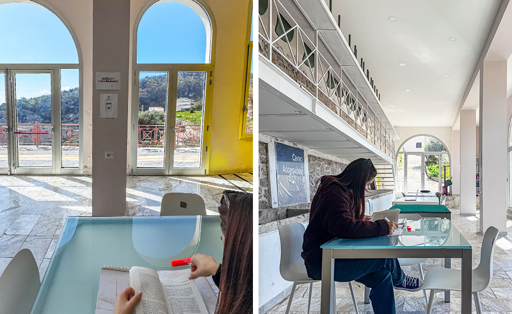 Oggi lo spazio di co-working del centro “Francesco Antonio Montone” si configura come un luogo vivo e multifunzionale, capace di adattarsi alle diverse esigenze della comunità. Gli ambienti accolgono una biblioteca e aree dedicate allo studio e al lavoro in smart working, offrendo un contesto tranquillo e luminoso per la concentrazione e la produttività. Allo stesso tempo, la flessibilità dello spazio consente di ospitare conferenze, incontri pubblici e momenti di confronto, trasformandolo in un punto di riferimento per la diffusione culturale e la partecipazione civica.