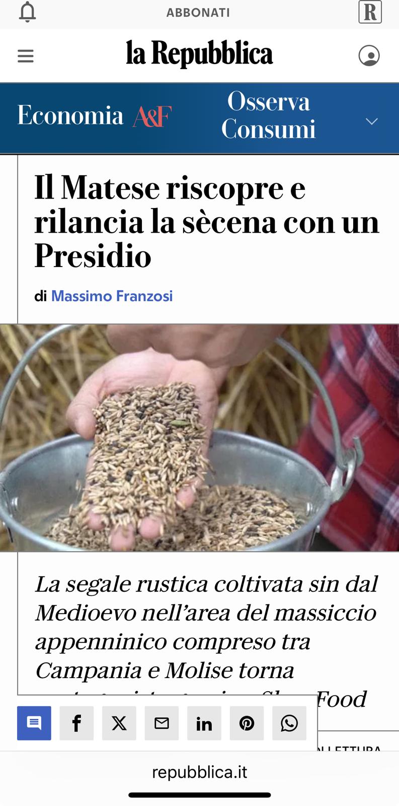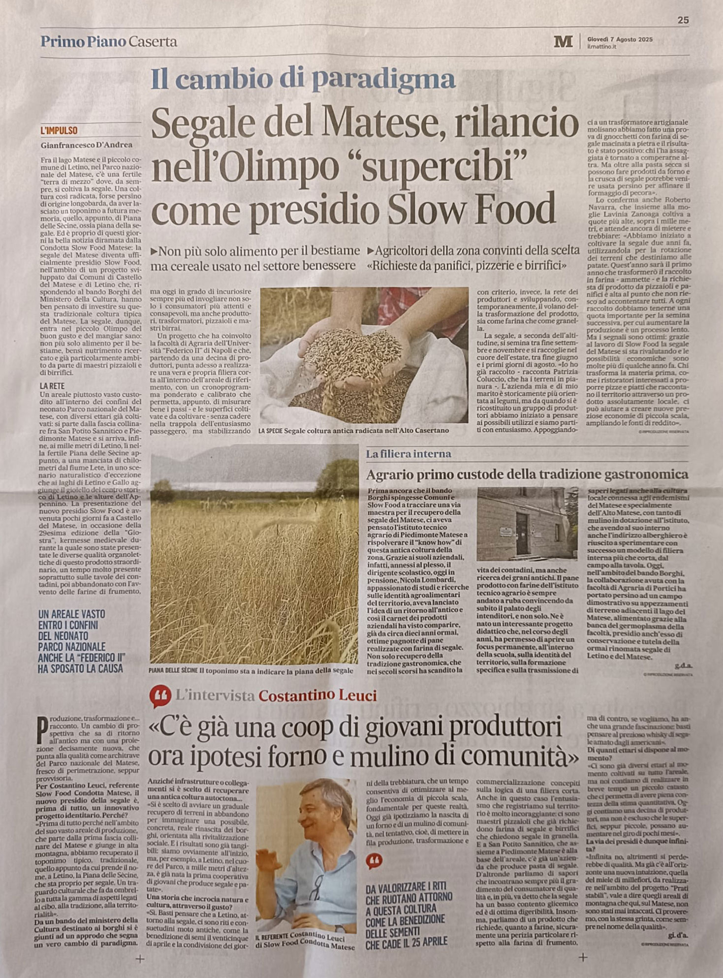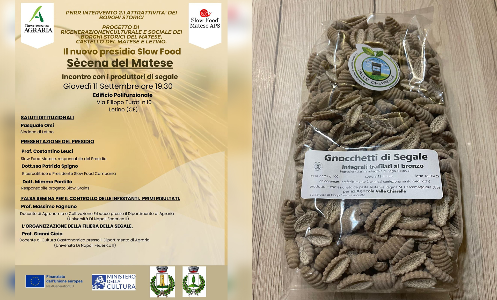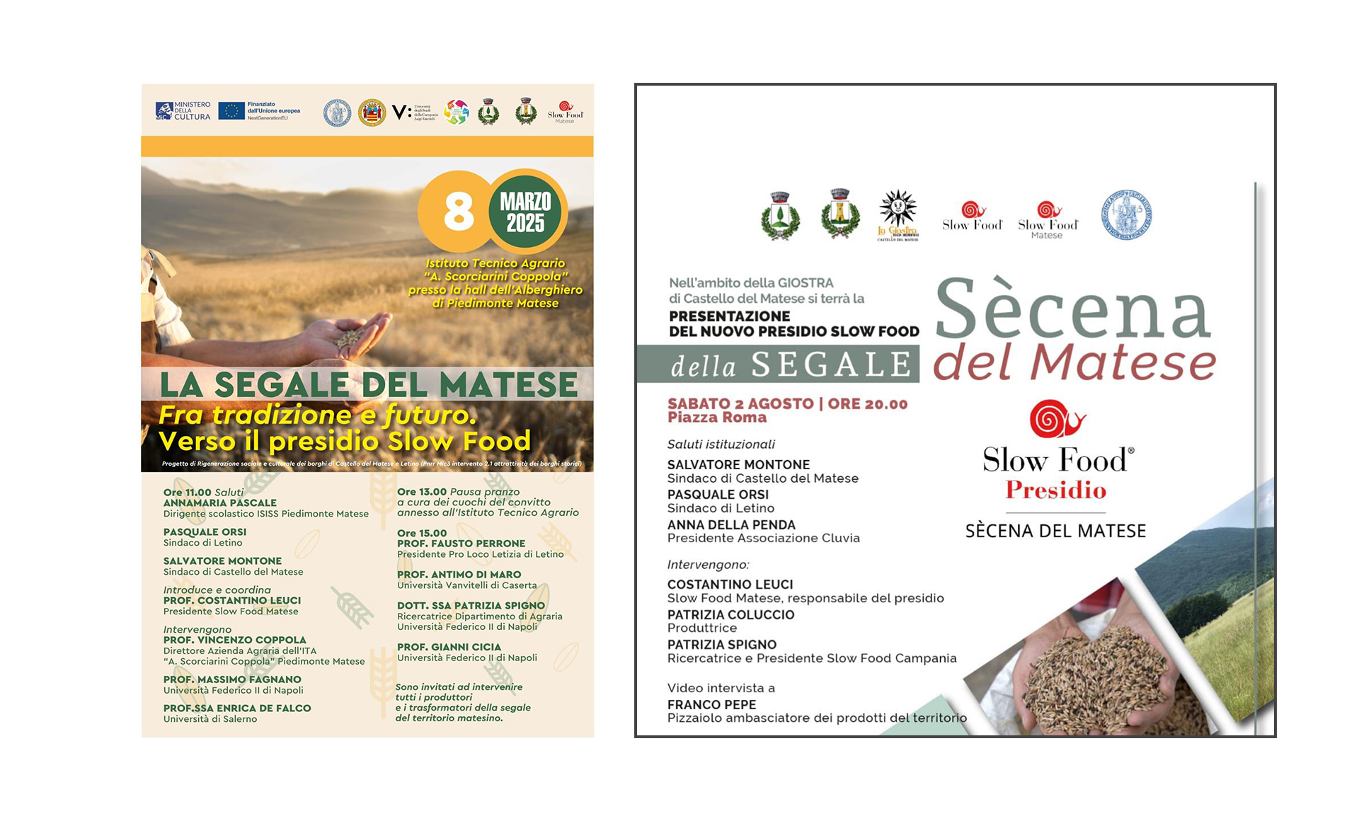 Riconoscimento del presidio slow Food per la Secéna del Matese, un’antica coltura di un cereale che per secoli ha costituito la base dell’alimentazione della comunità di Letino e del Matese, essendo resistente anche a temperature più fredde.